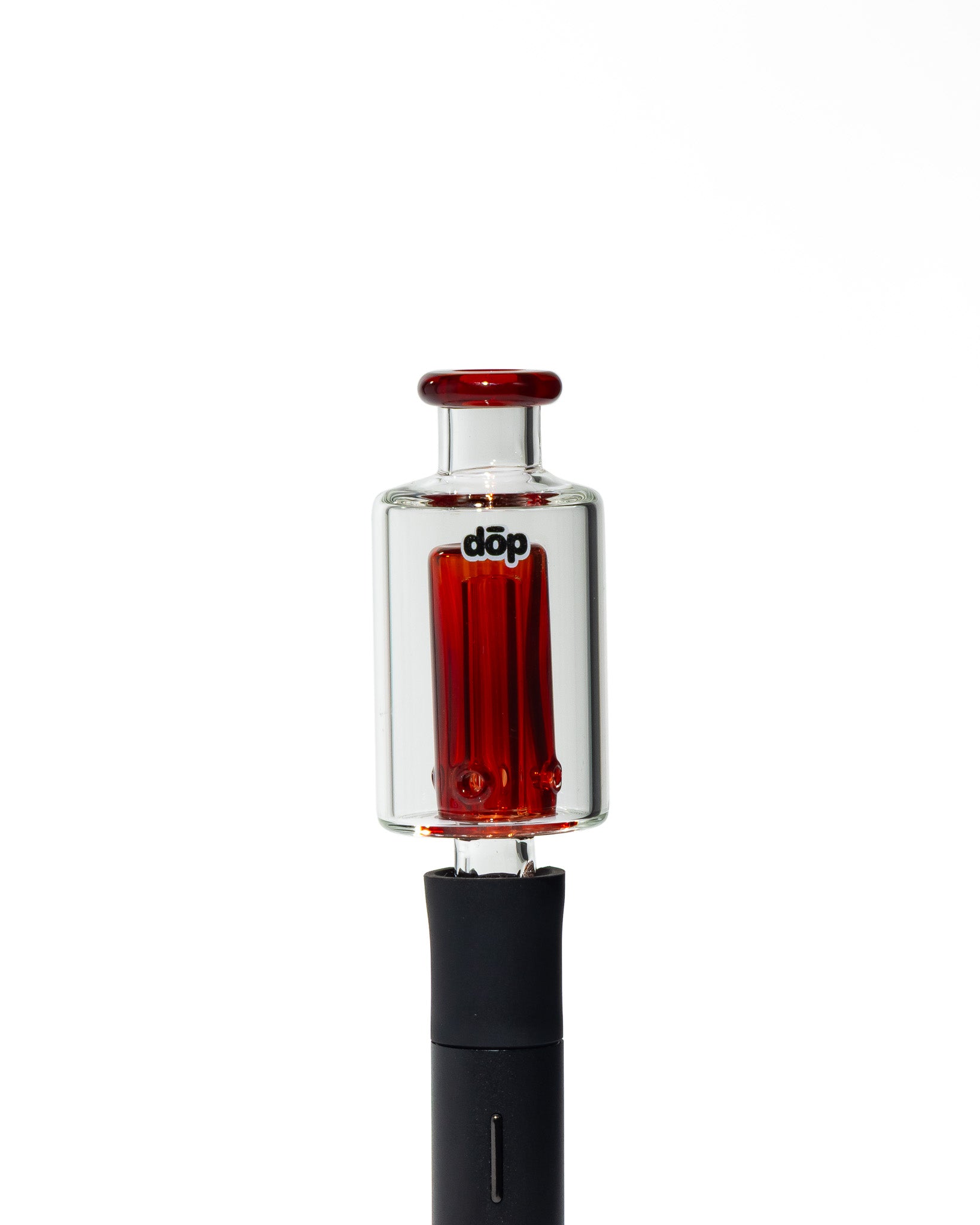 Design Details: This eye-catching Pivot attachment features a striking transparent red inner chamber encased in a crystal-clear outer can for that bold, high-contrast aesthetic dop is known for. The cylindrical silhouette is finished with a matching red lip wrap and a stamped dop logo, making this piece feel modern, refined, and unmistakably custom.